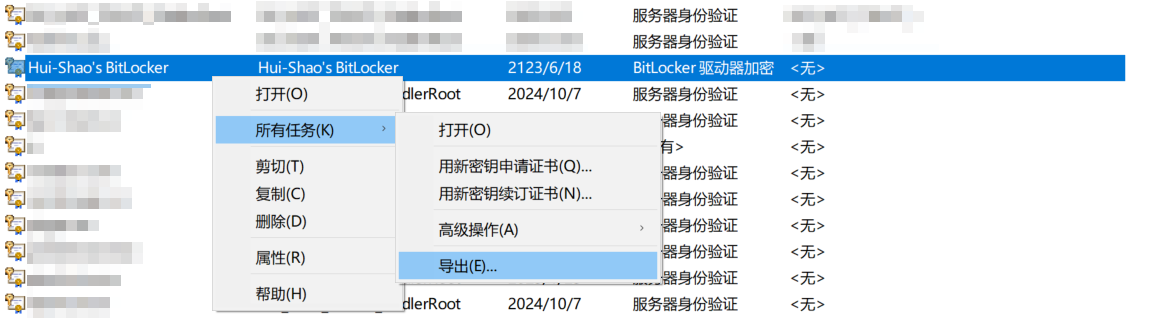 Hui-Shao's BitLocker),右键将其导出:![]()