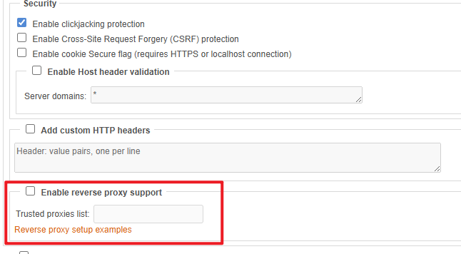 此外,我还找到了 Web UI 设置里的 Enable reverse proxy support 选项。