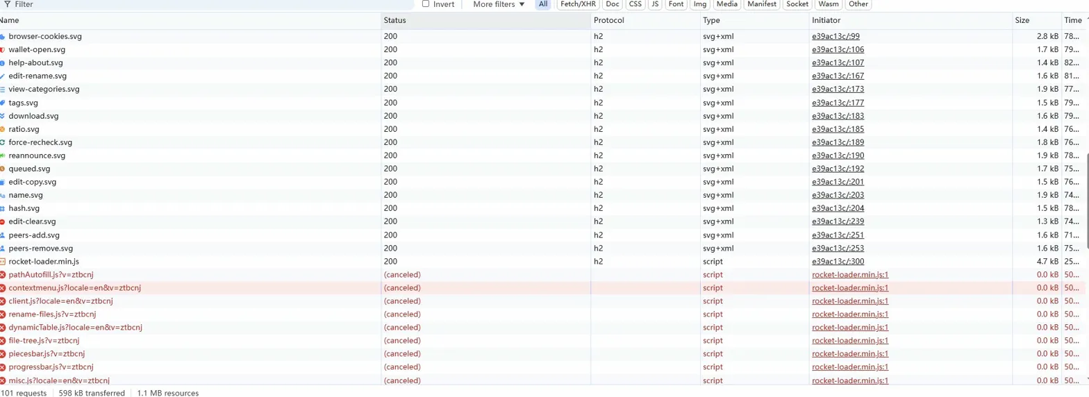 通过反向代理访问 qBittorrent 5.x Web UI 时种子列表不显示——记一次 Cloudflare Rocket Loader 引发的问题
